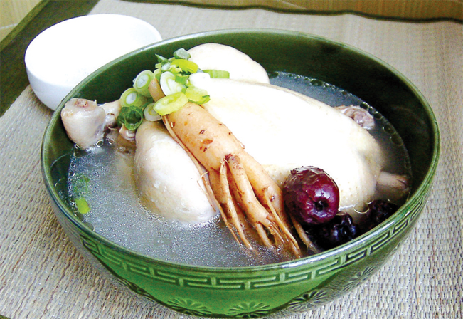 menu “Samgyetang,” rebusan ayam muda bersama ginseng dan kurma yang dimasak