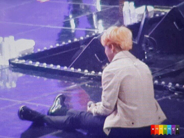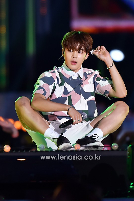 sepertinya gaya duduk yang ini menggambarkan Jimin yang sedang lelah karena banyak bergerak dan bernyanyi, Fighting!