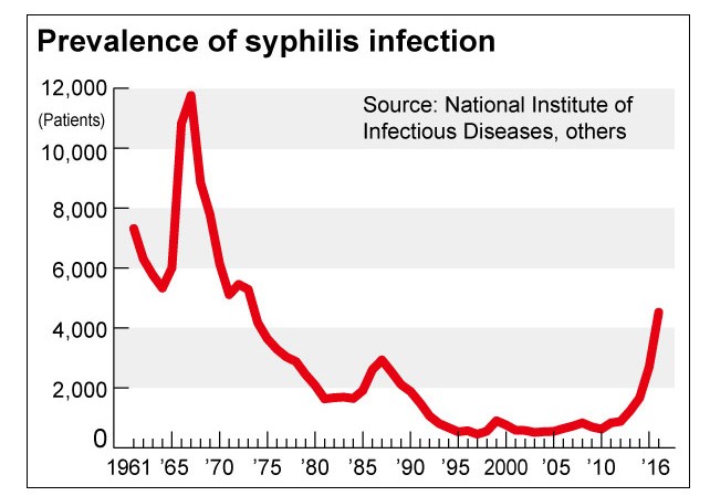 penderita sipilis di Jepang meningkat 5 kali lipat, dilihat dari tahun 2012