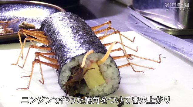untuk menarik penampilannya, koki menambahkan kaki belalang di pinggir shusi. Sei