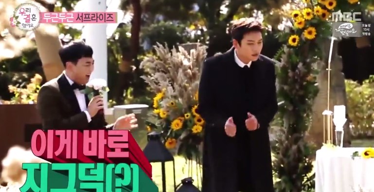 menjadi semakin semarak saat sang aktor menari untuk kedua mempelai. Saat berjalan menuju altar, Tae Joon malu-malu