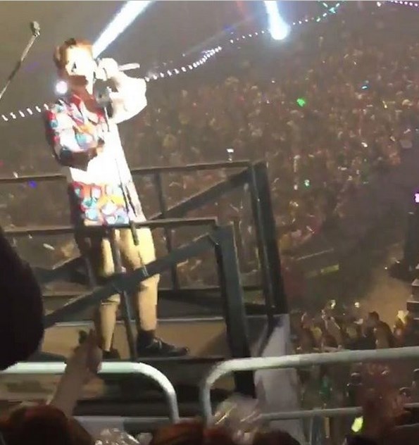 fan yang berhasil mengabadikan moment sang penyanyi sebelum ia terjatuh, dan