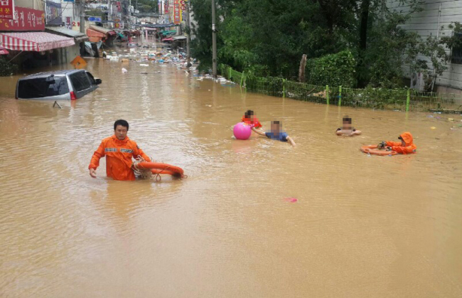 angin disertai luapan air laut yang membanjiri wilayah selatan Korea Selatan
