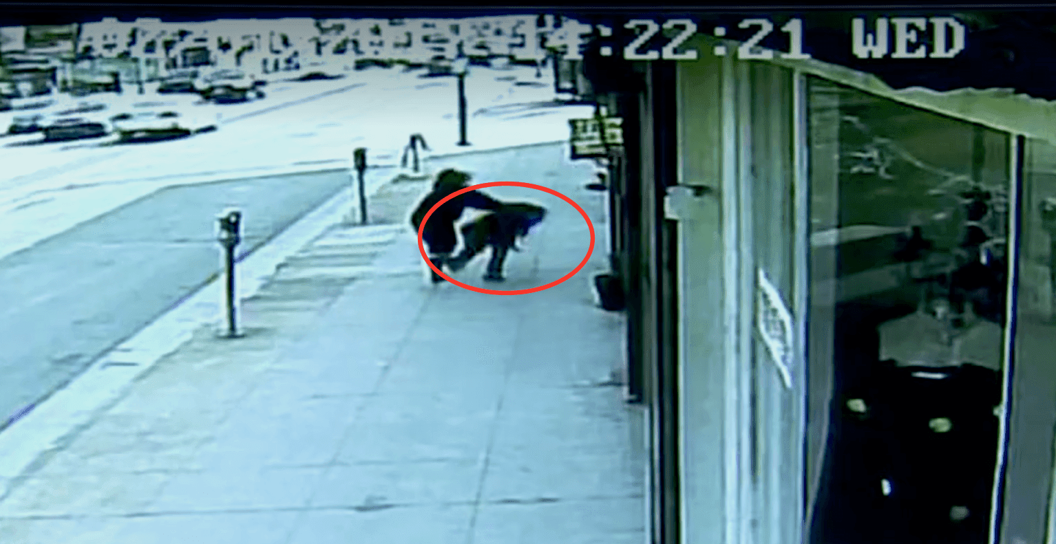memperlihatkan pelaku sambil mendorong nenek hingga tersungkur. Setelah nenek